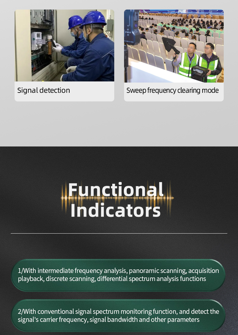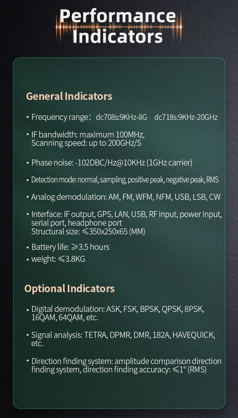 (1) Able to detect and analyze RF signals in the range of 9KHz-8GHz/20GHz;