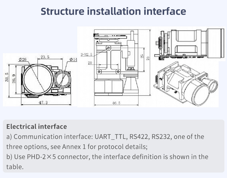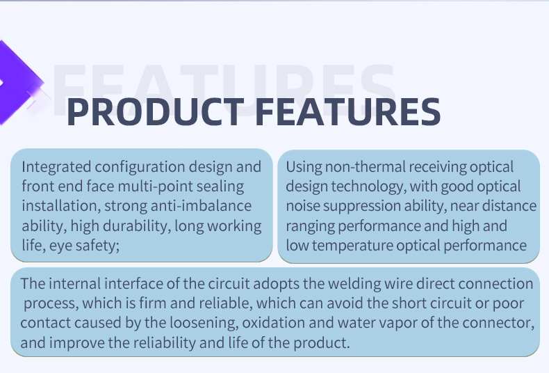 2. Using non-thermal receiving optical design technology, with good optical noise suppression ability, near distance ranging performance and high and low temperature optical performance;