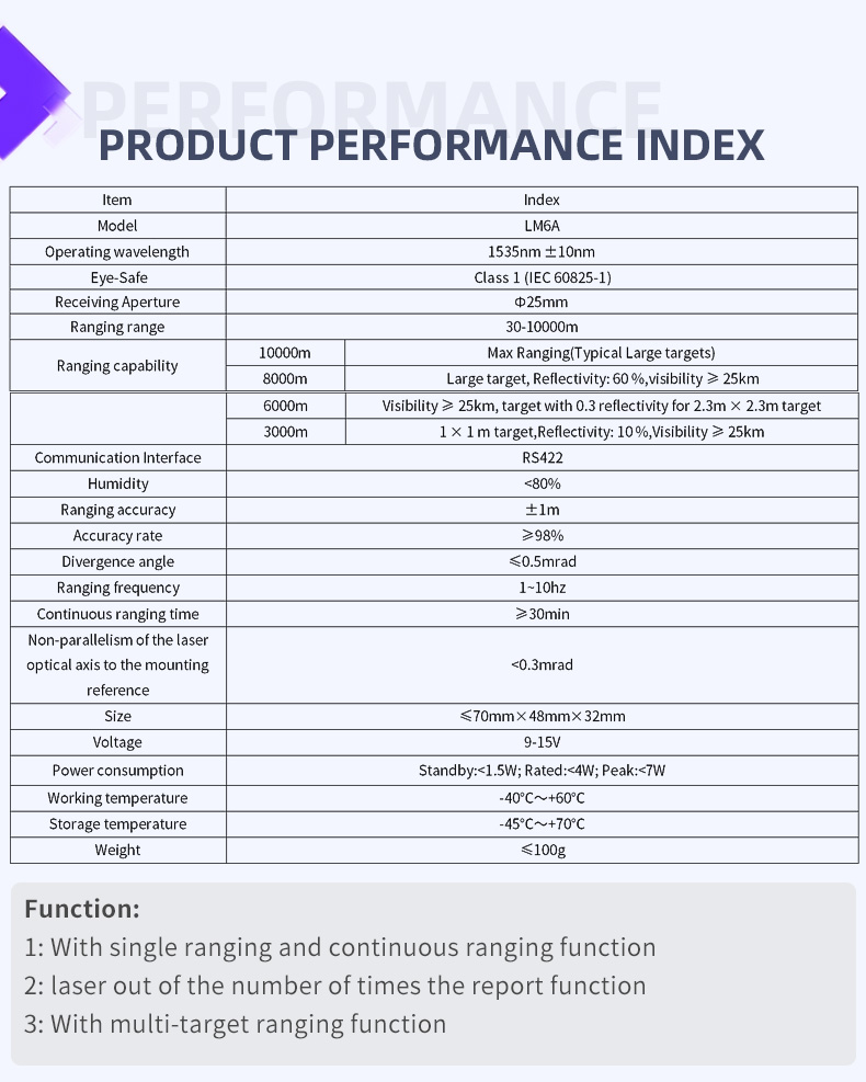 --LM6A 6KM rangefinder module: 6000m (2.3x2.3m NATO Targets), 10000m (Largest target)