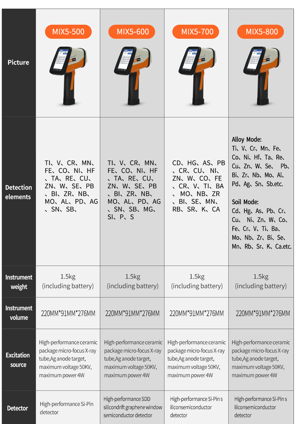 MIX5 PRO 700/800 Series XRF Analyzer - Portable Metal & Alloy Element Detector