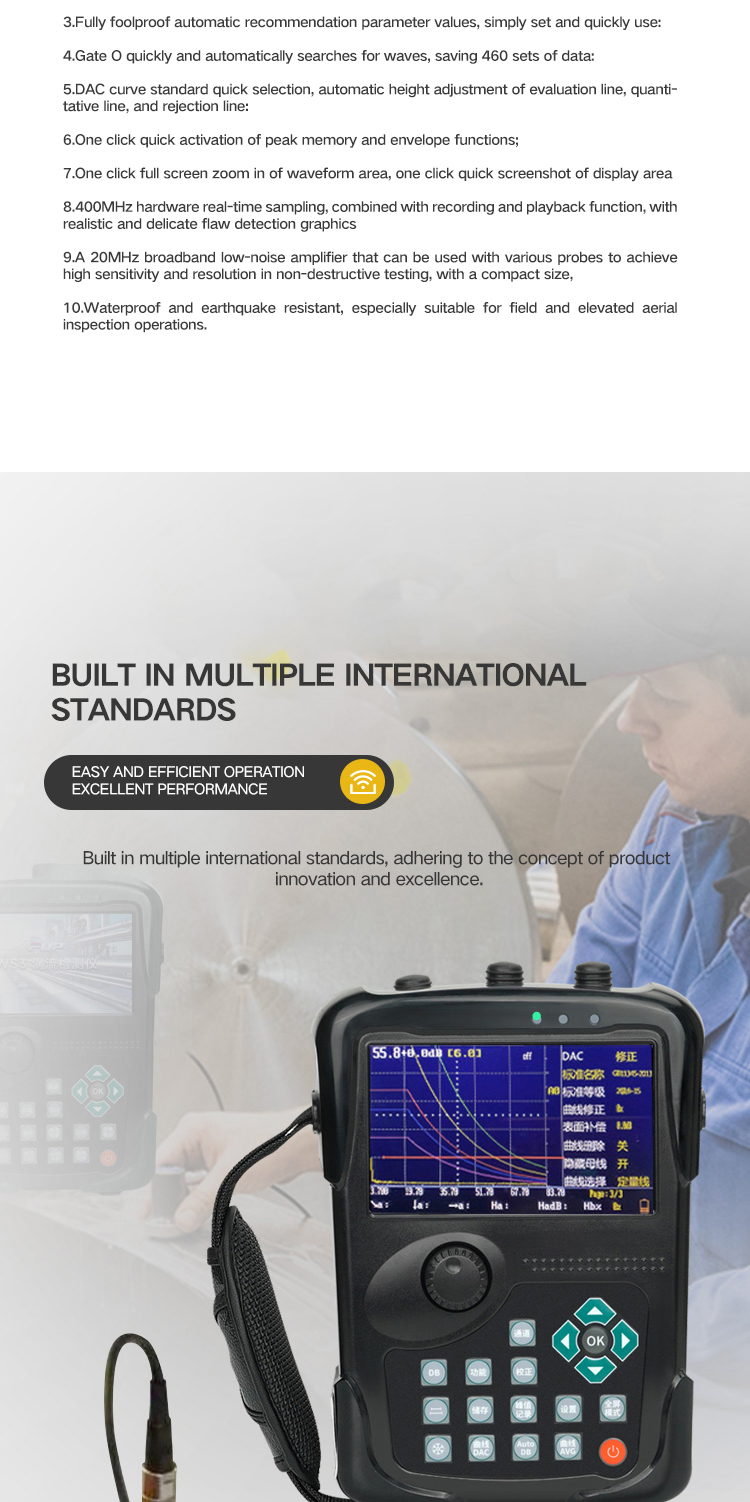Small size, waterproof and shockproof, especially suitable for field and high-altitude flaw detection operations.