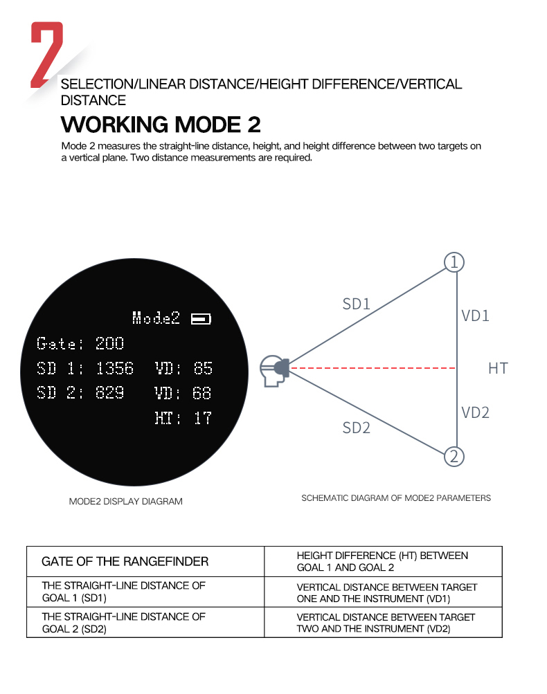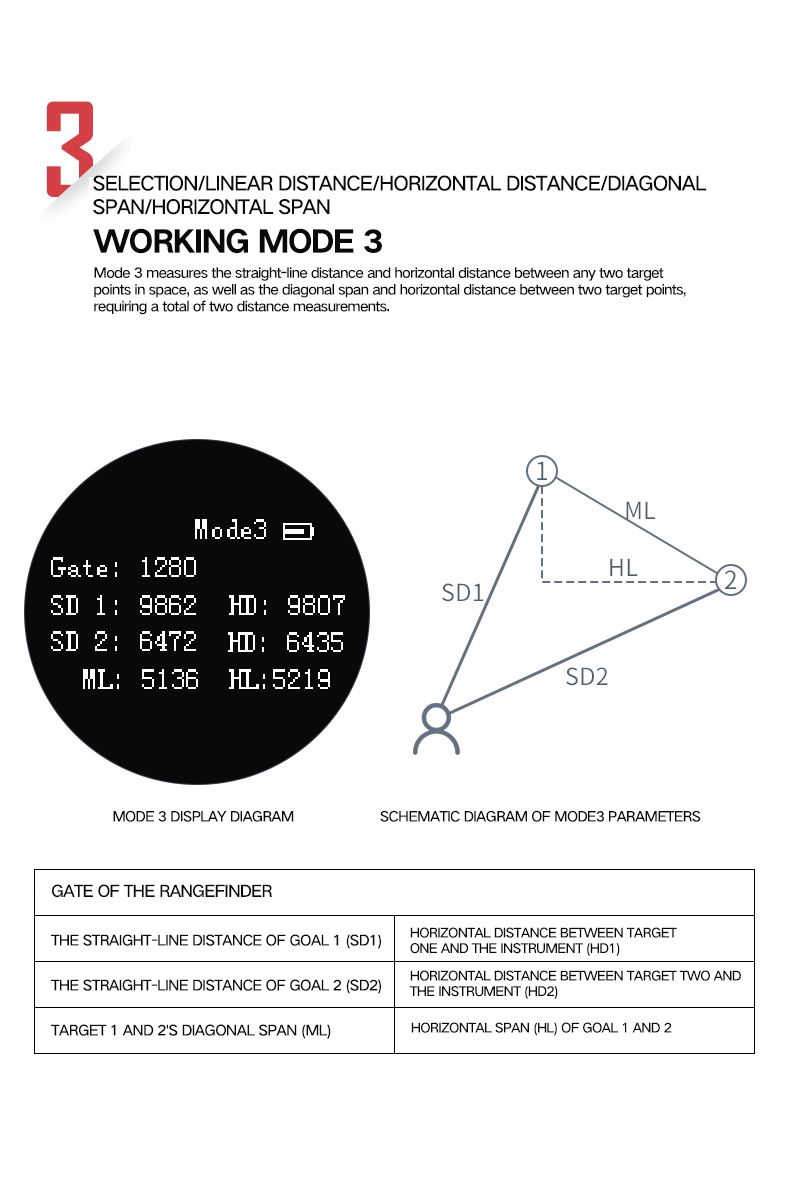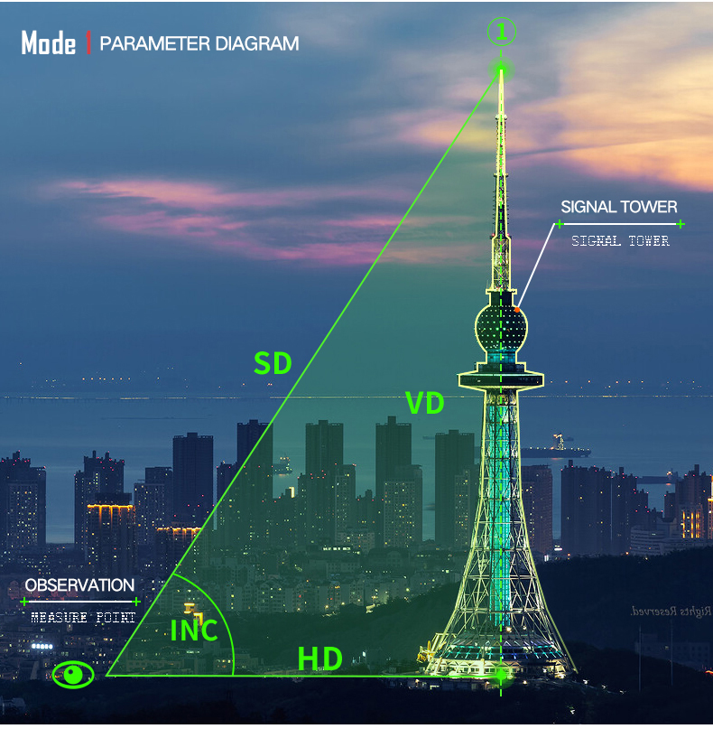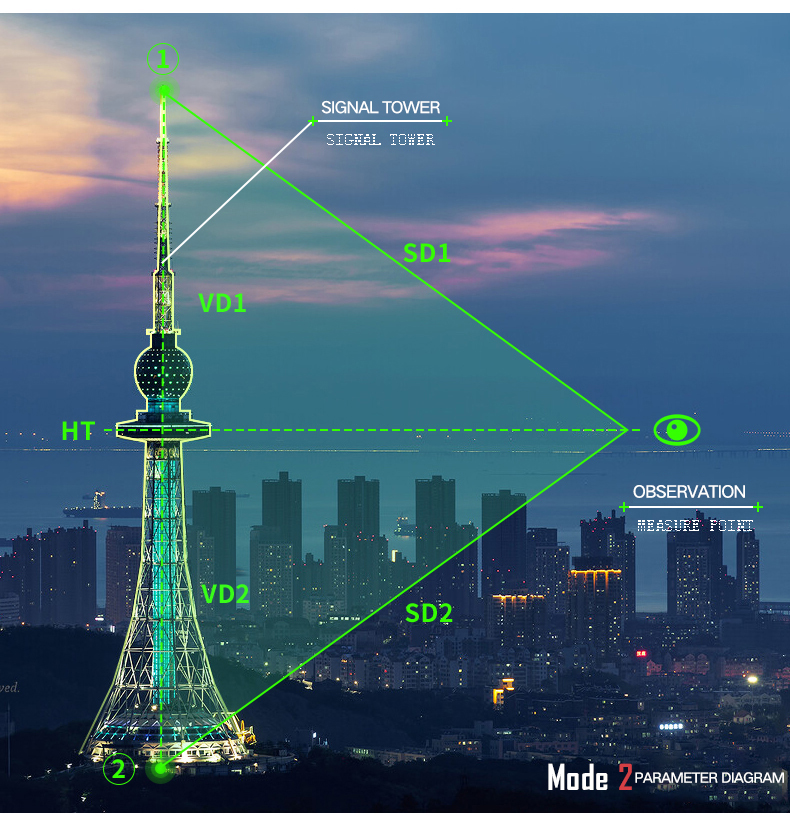 1. The target of the straight line distance, horizontal angle, horizontal distance, height measurement