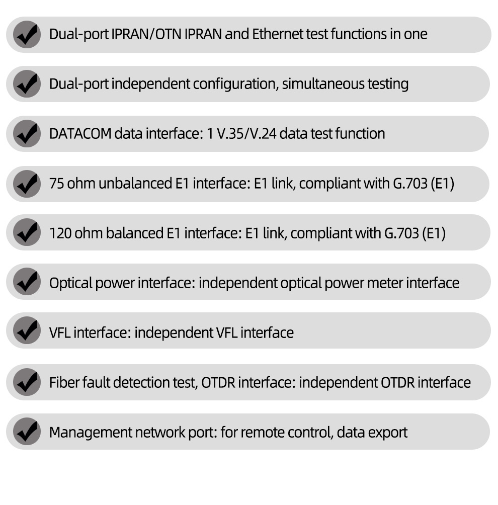 10G Ethernet Test, E1 Test, PRI Test, V.35/V.24 Test, OTDR, OPM