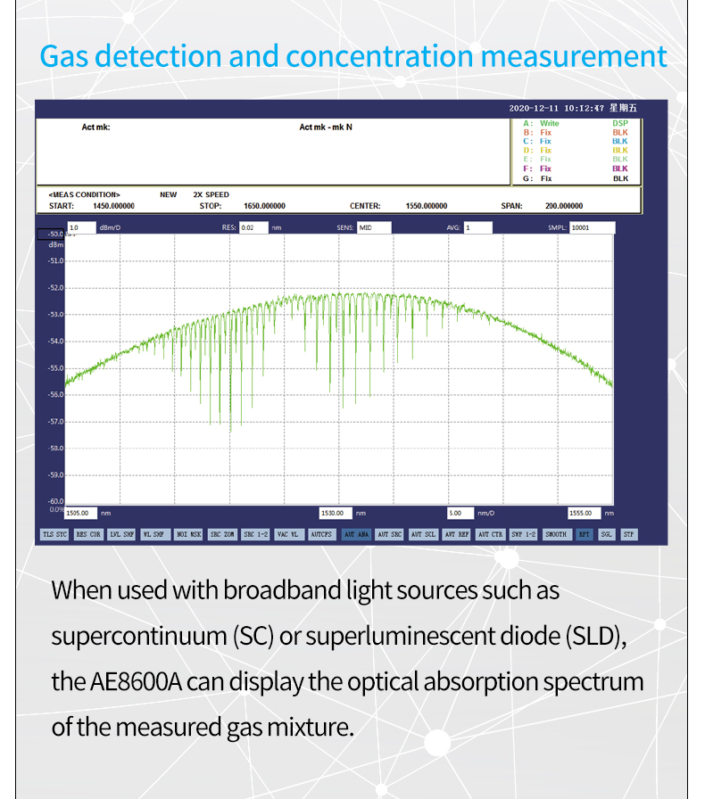 7 wavelength resolution settings 20pm-2nm, allowing users to choose the best value according to test needs