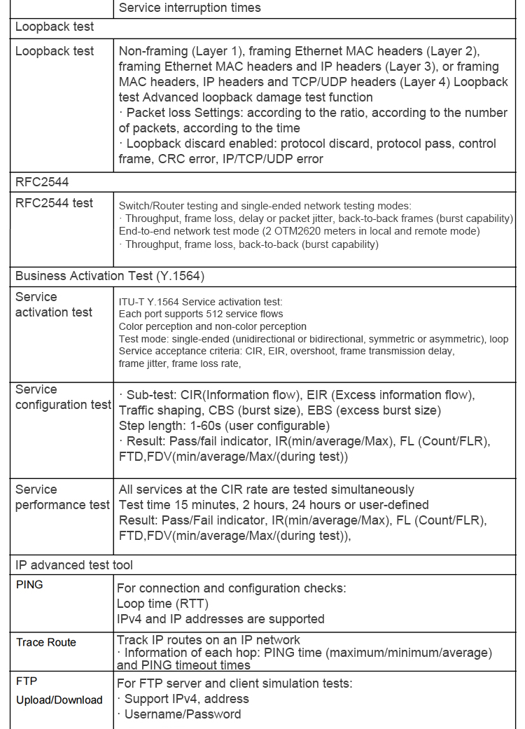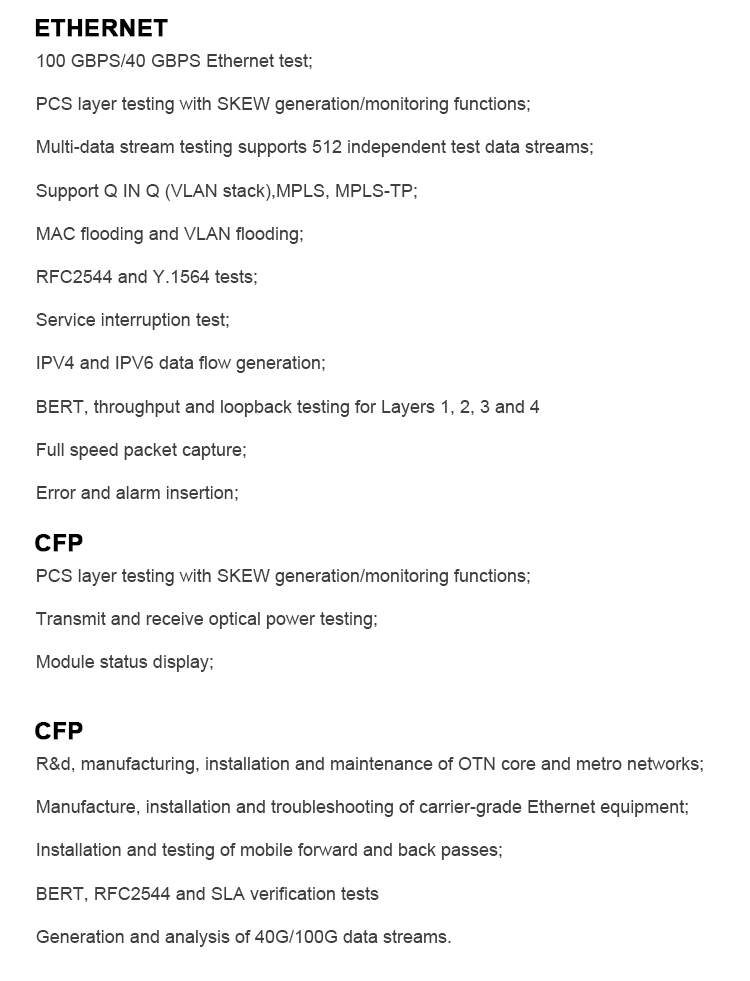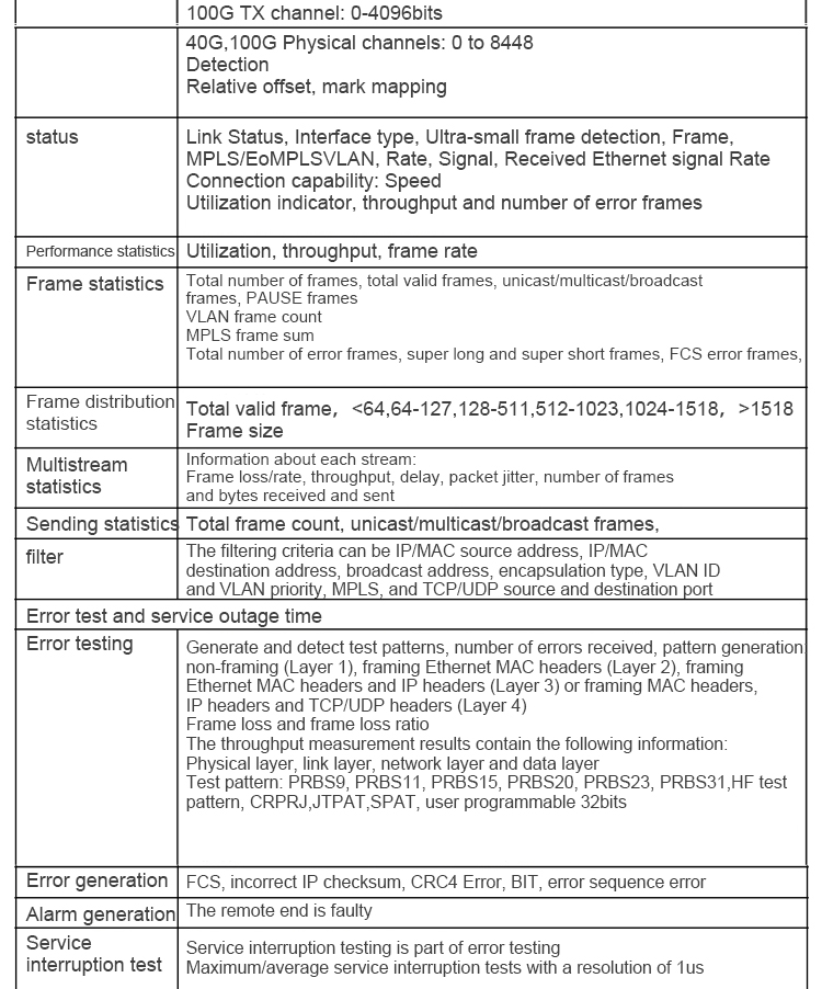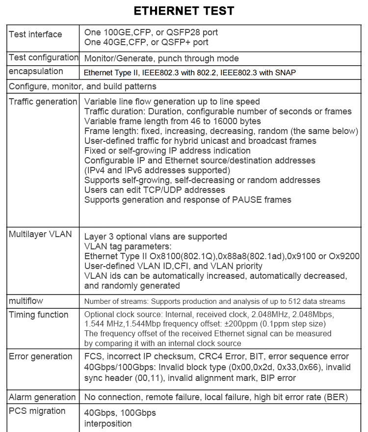 1. Support DSn/PDH test function for DS1/DS3, E1/E3/E4 interface