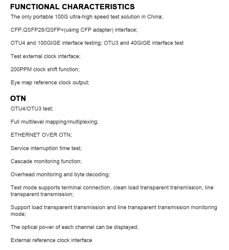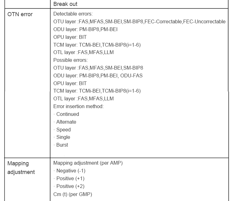 2. Support SDH/SONET test function for STM-1/OC-3 electrical port, STM-1/OC-3 optical port