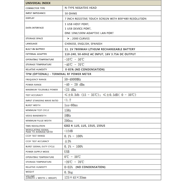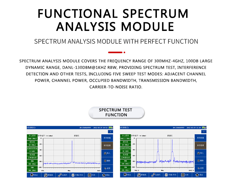 Cable Antenna Analyzer: 1MHz~6GHz | Spectrum Analyzer: 300MHz~4GHz