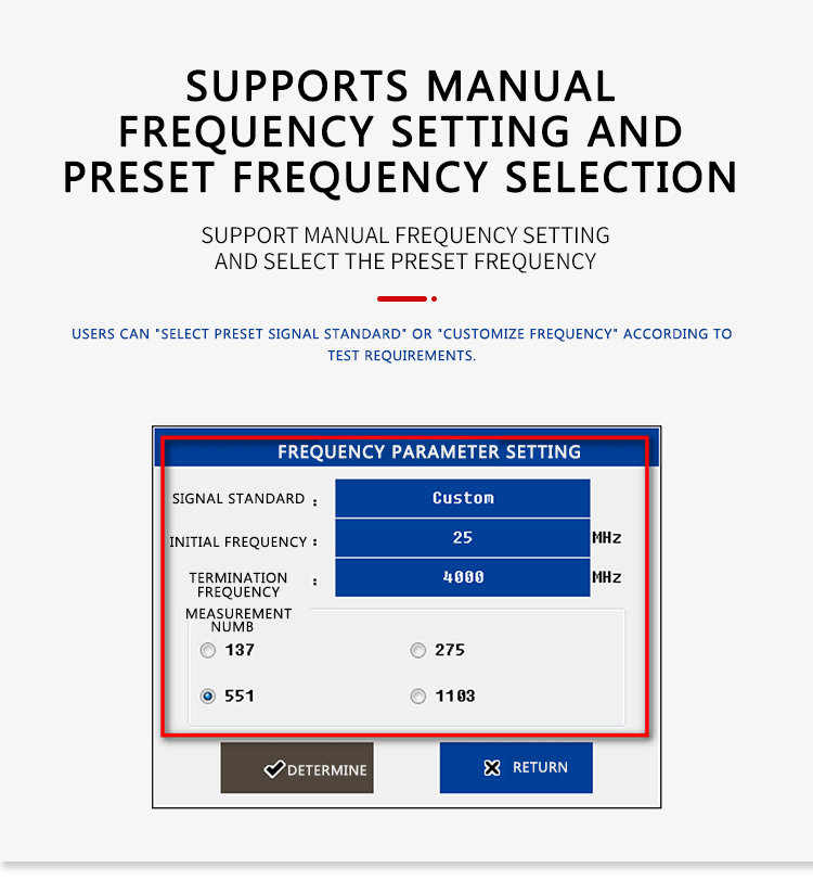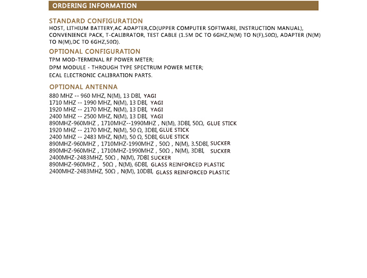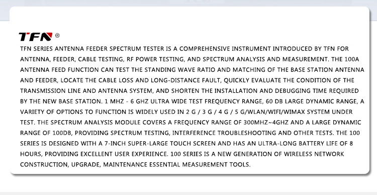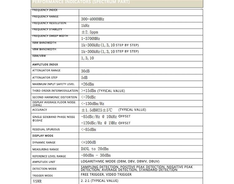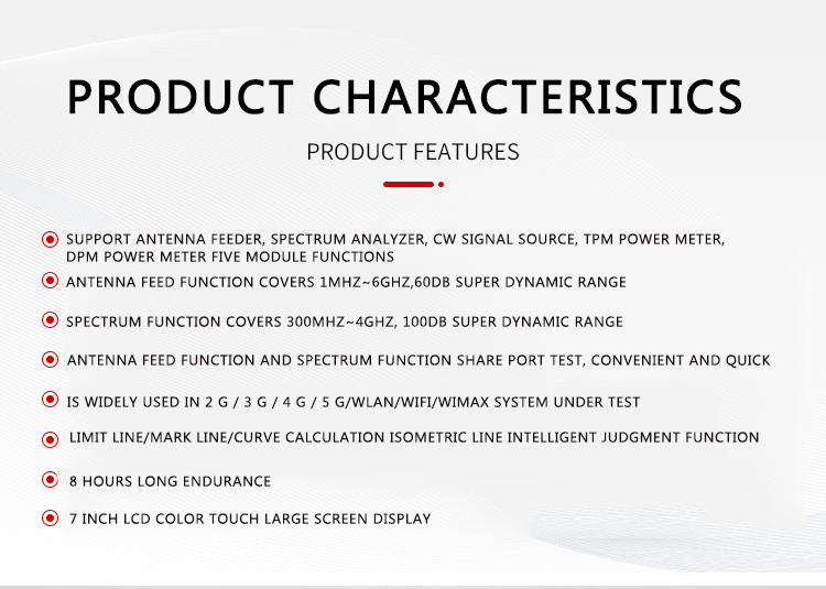 2. Frequency Range: 1-6000 MHz for antenna analyzer; 300-4000 MHz for spectrum analyzer