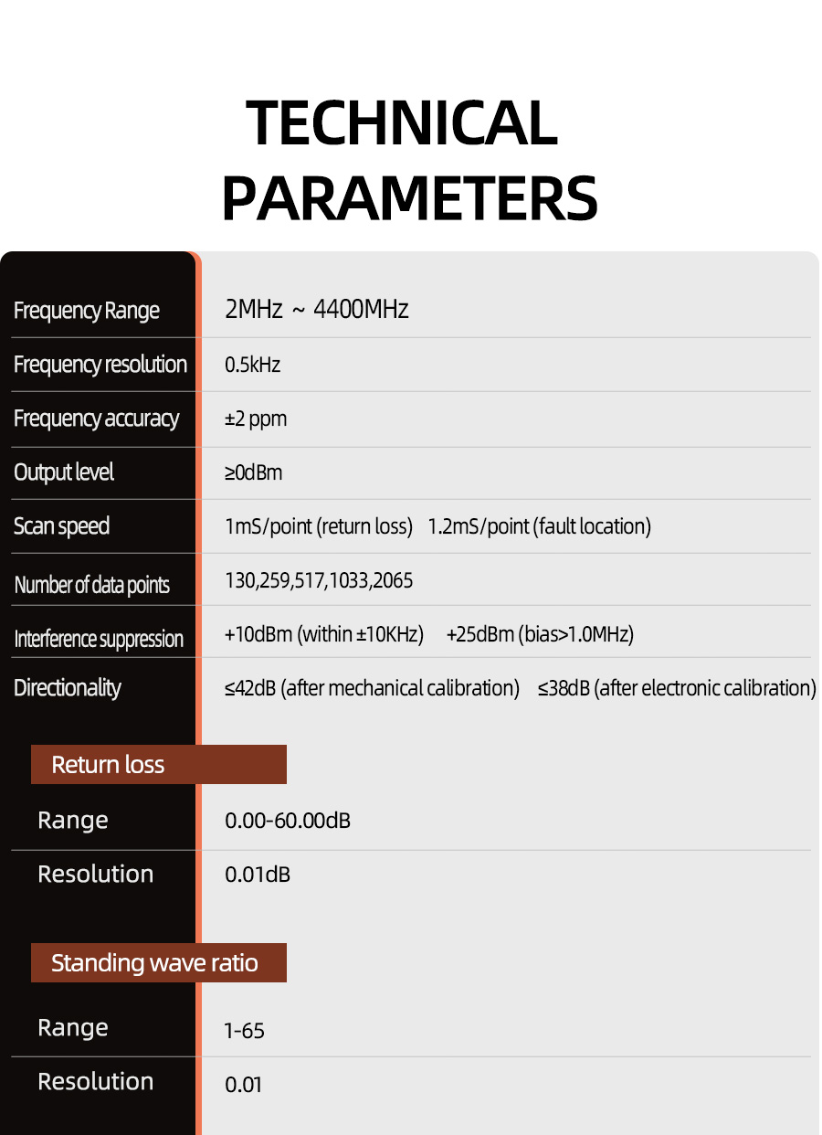 1. Frequency Range: 2MHz--4.4GHz/6GHz