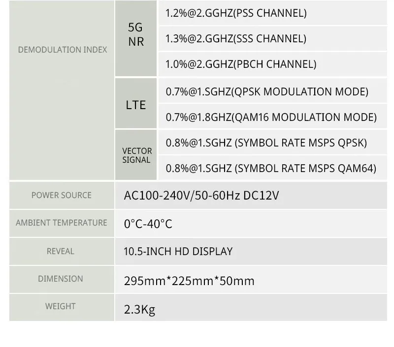 5. It has the demodulation and analysis function of various mobile communication systems such as 5GNR/TDD-LTE/FDD-LTE/NB-loT/WCDMA/GSM;