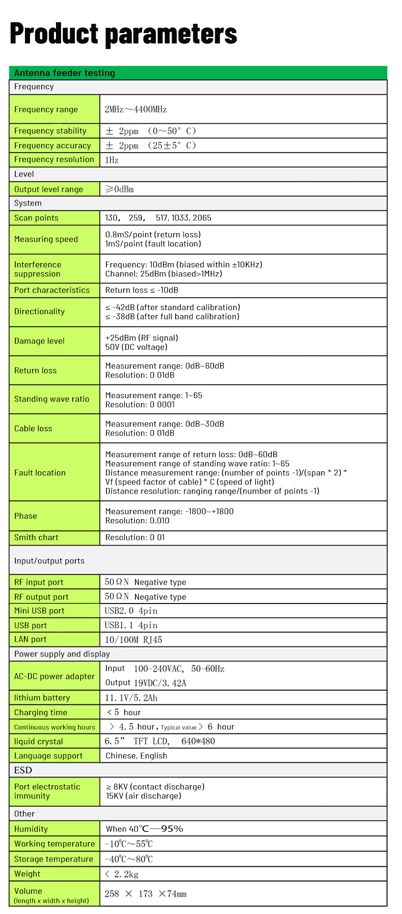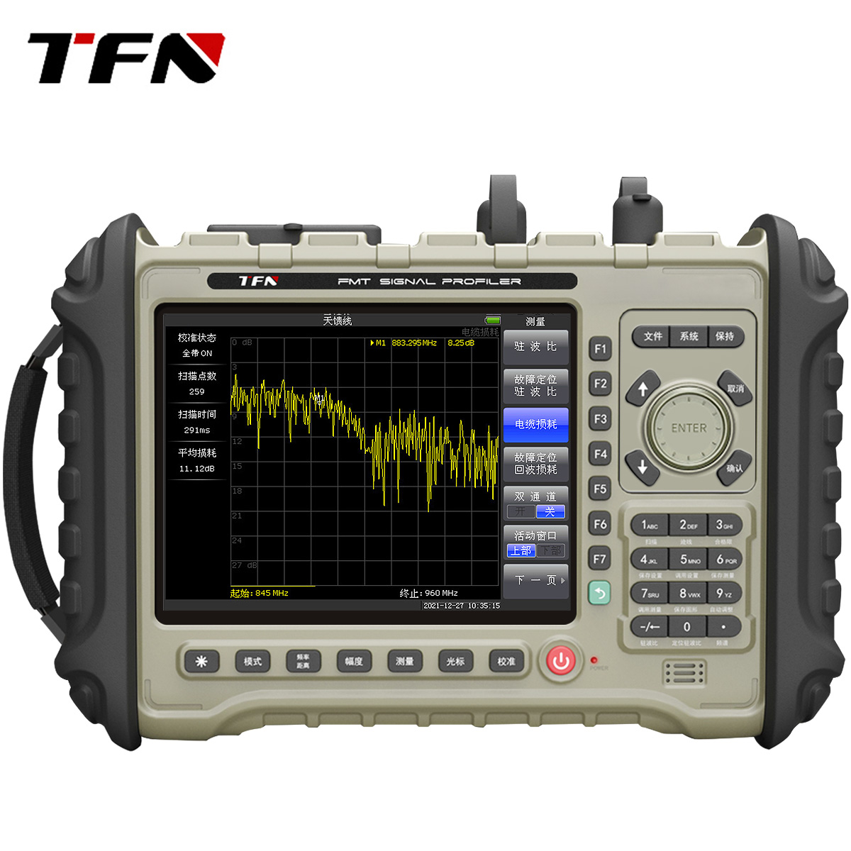 and spectrum analysis measurement. It is used to measure "return loss", "standing wave ratio", "cable loss", "fault location",