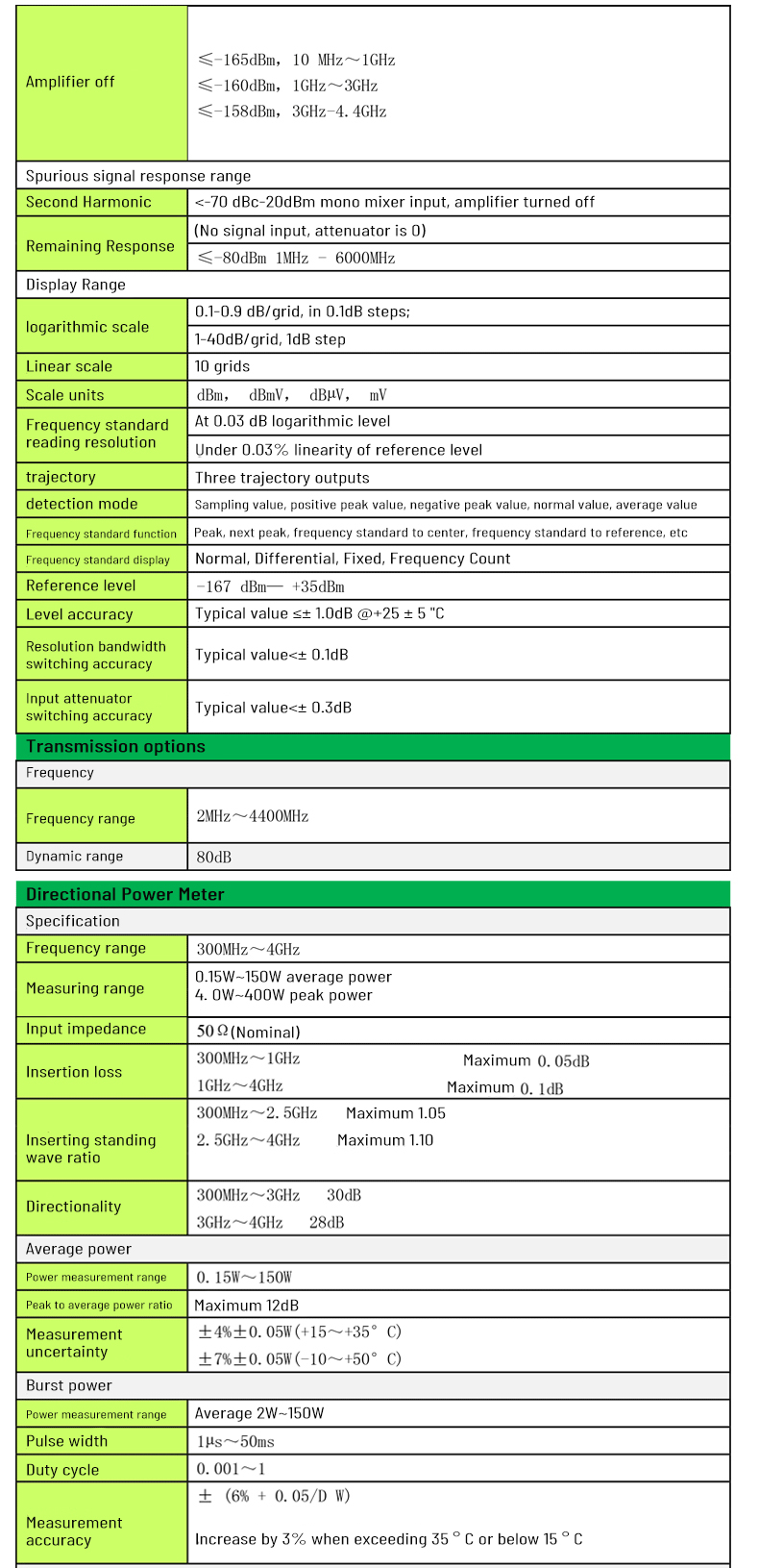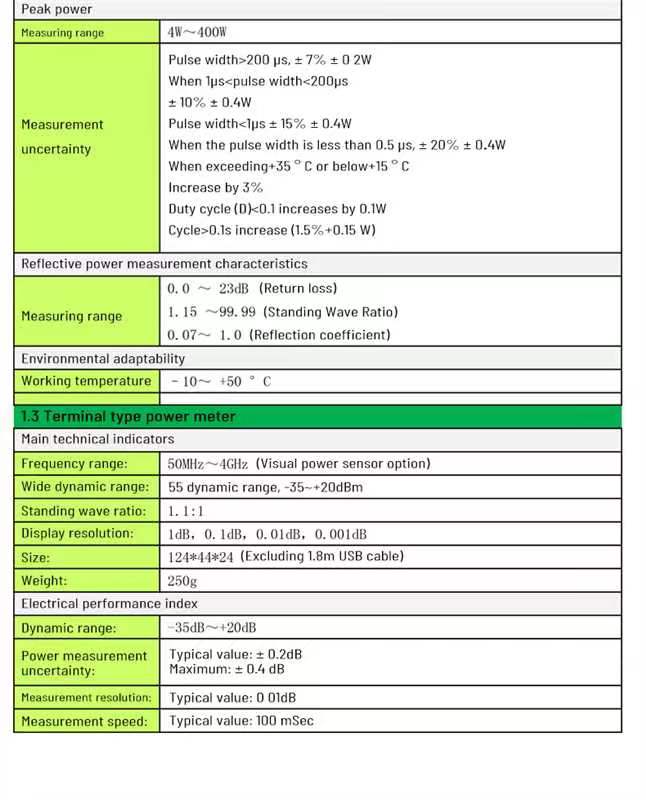 transmission measurement, power meter and other options.