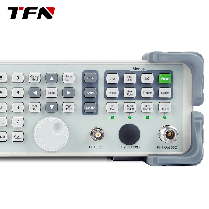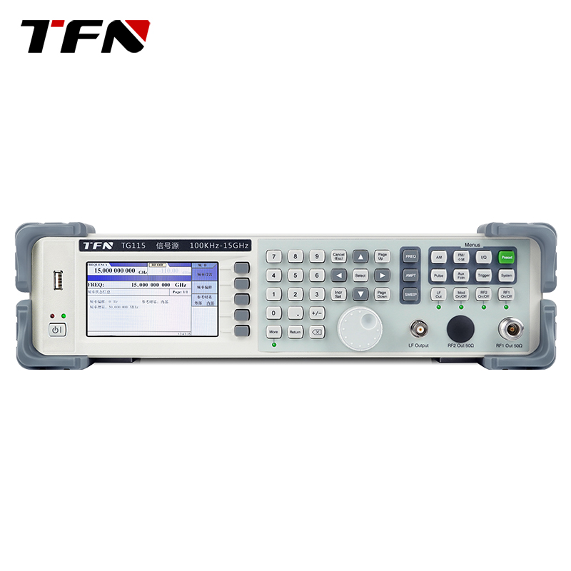 The TFN TG115 Microwave Signal Generator is designed to be a versatile and cost-effective signal generator covering the frequency range of 100kHz to 15GHz, with a variety of commonly used analog modulation functions (AM/FM/ϕM), pulse modulation, low frequency output and frequency/amplitude scanning functions. These functions make the generator a flexible and versatile instrument suitable for teaching, research, product development, production and maintenance, meeting the needs of different application scenarios. The rich logic hardware interface and wide-screen LCD display make it easy for you to perform various control operations. The standard 2U height chassis, complete standard SCPI command set and universal multi-communication mode bring you great convenience for remote control and secondary development.