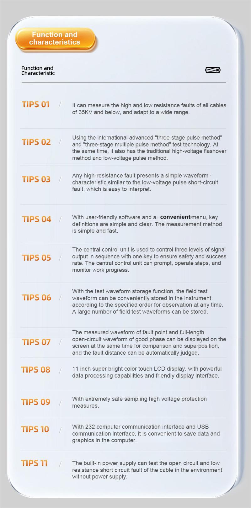 1. Can be measured below 35KV level of all cables with high and low resistance faults, widely adapted.