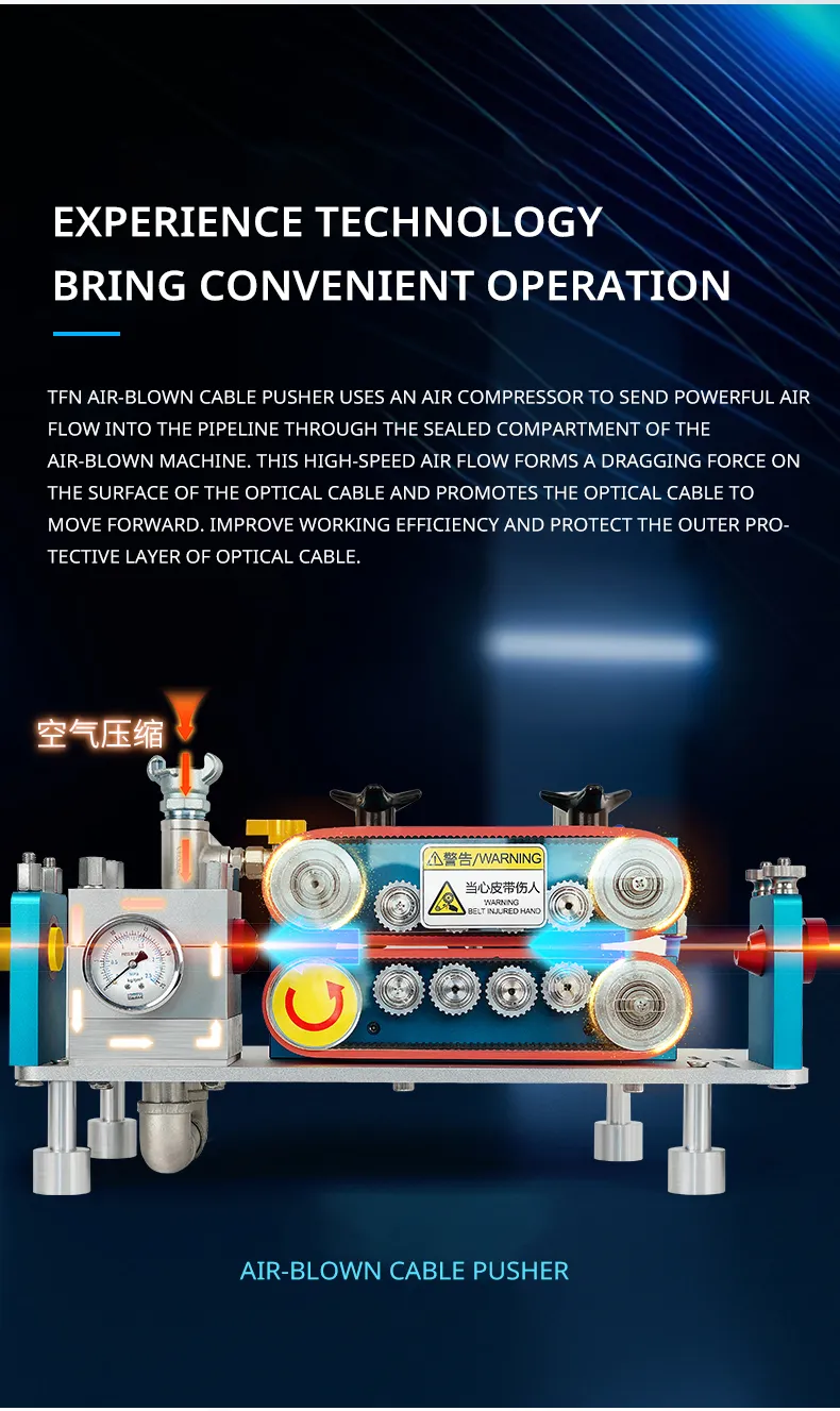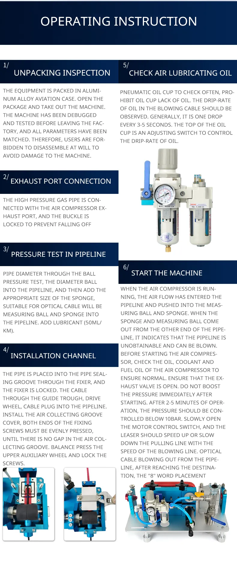 T700CQ pneumatic cable blowing machine is widely used in communication internet operation, highway, information technology railroad, petroleum and petrochemical pipeline, national defense communication, water conservancy project, large building office space, shopping malls, residential and so on. The equipment is lightweight, easy to operate, subject to external climate and pipeline manhole conditions such as less interference, air blowing speed, one-time air blowing distance is long, greatly shortening the construction cycle.