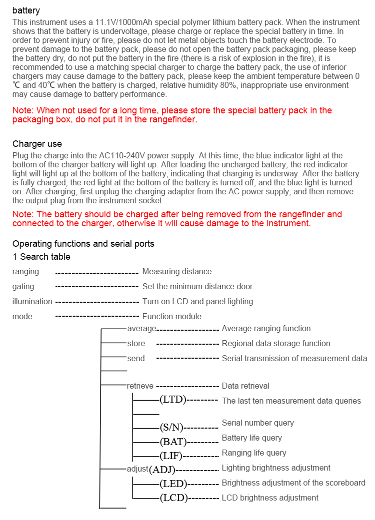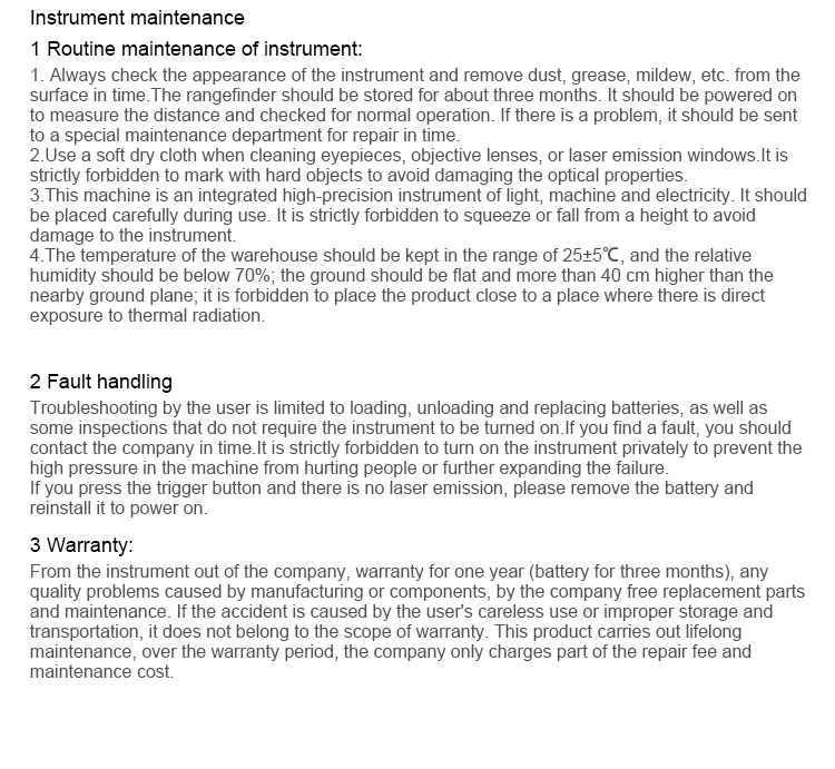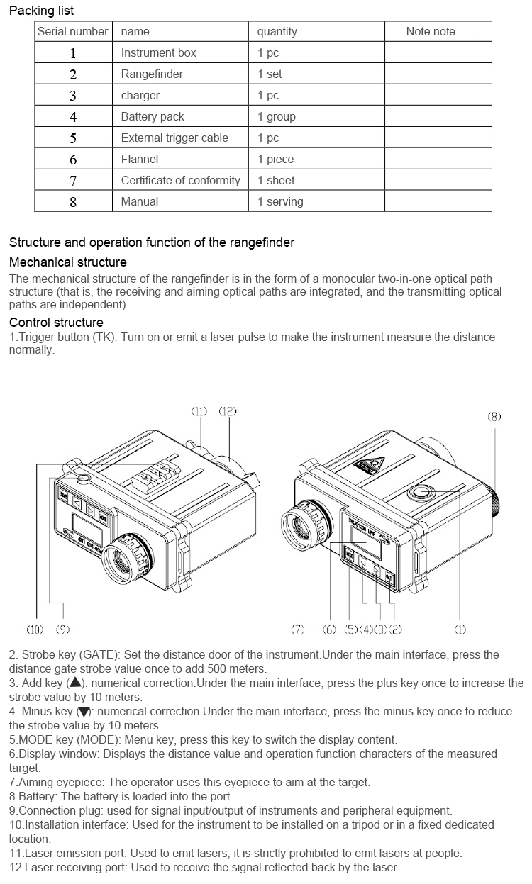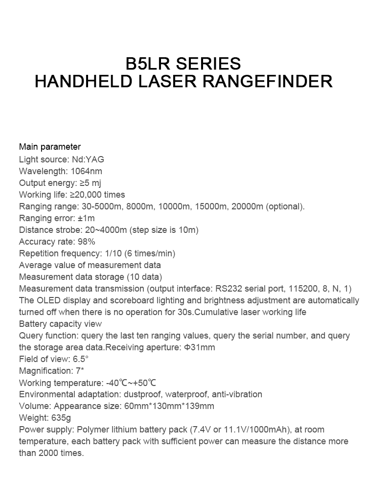 5. Ranging range: 30-5000m, 8000m, 10000m, 15000m, 20000m (optional).