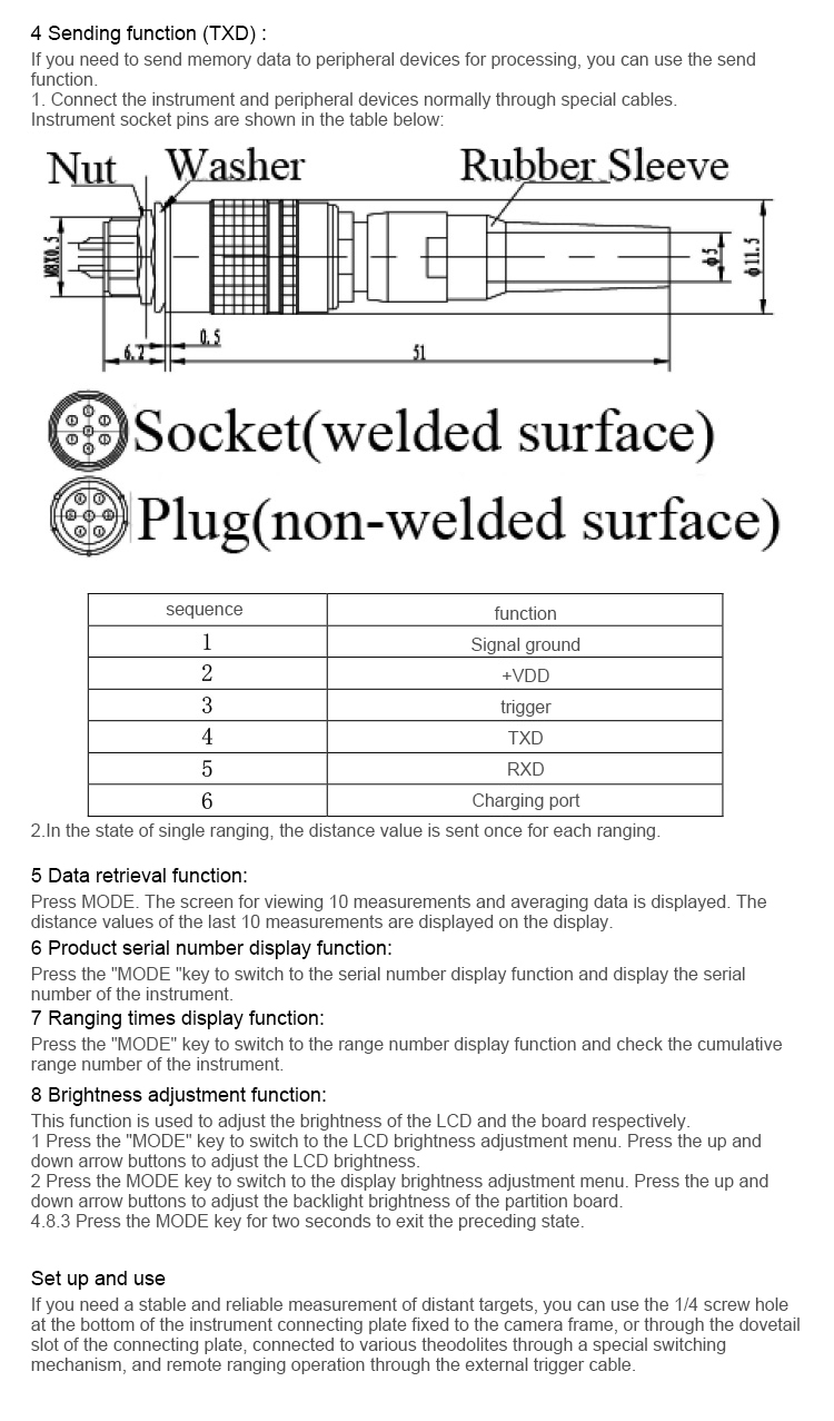 12. Query function: the last ten ranging value query, serial number query, storage area data query.