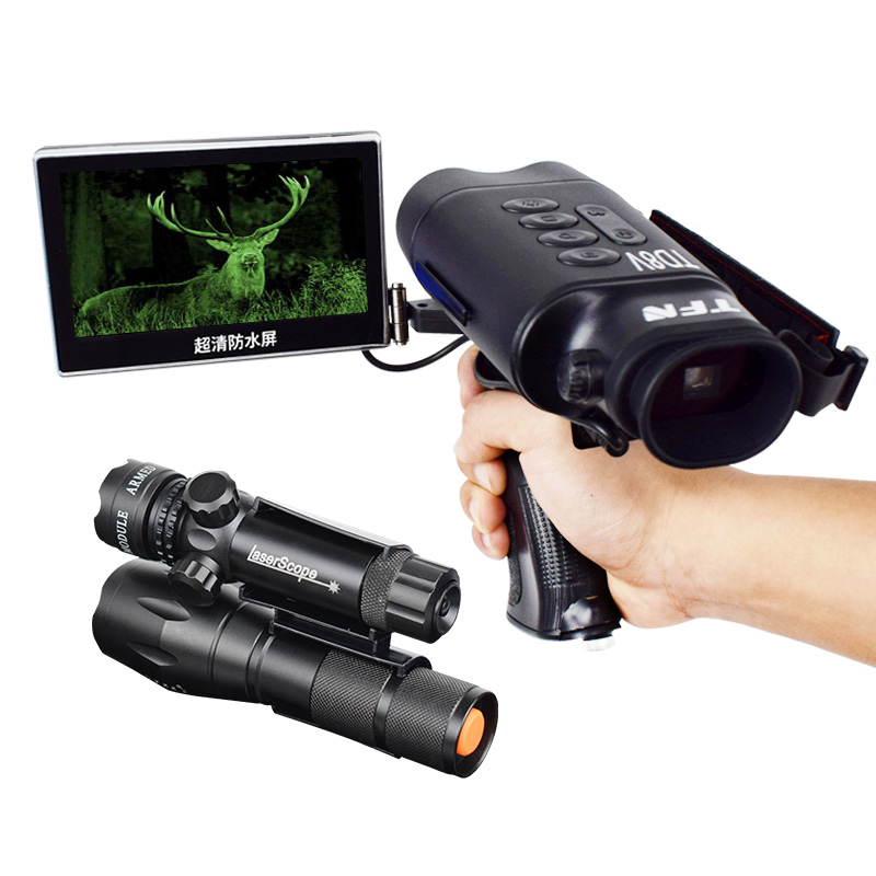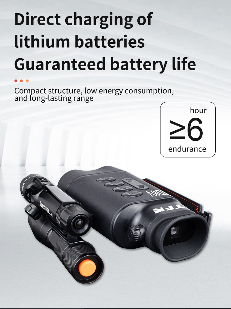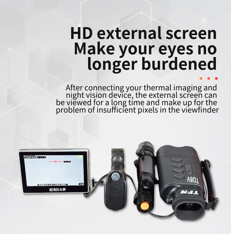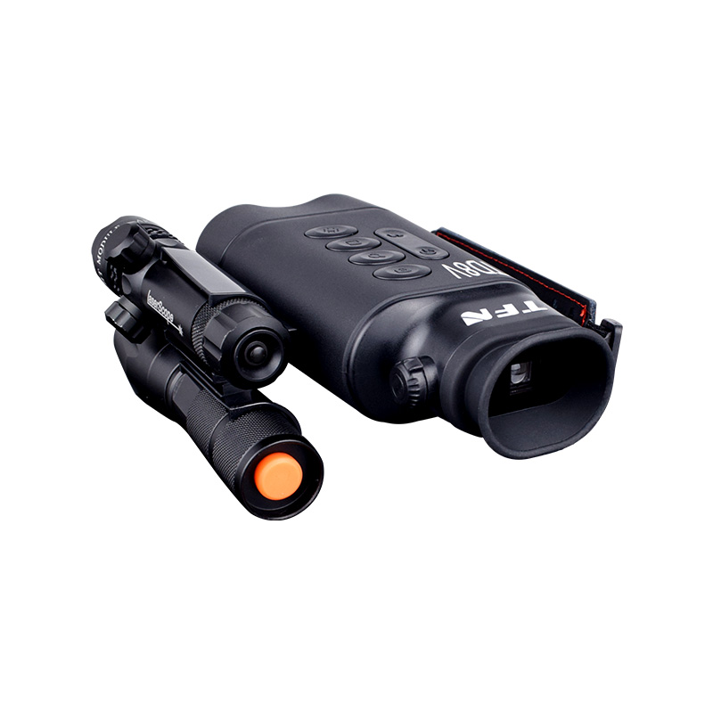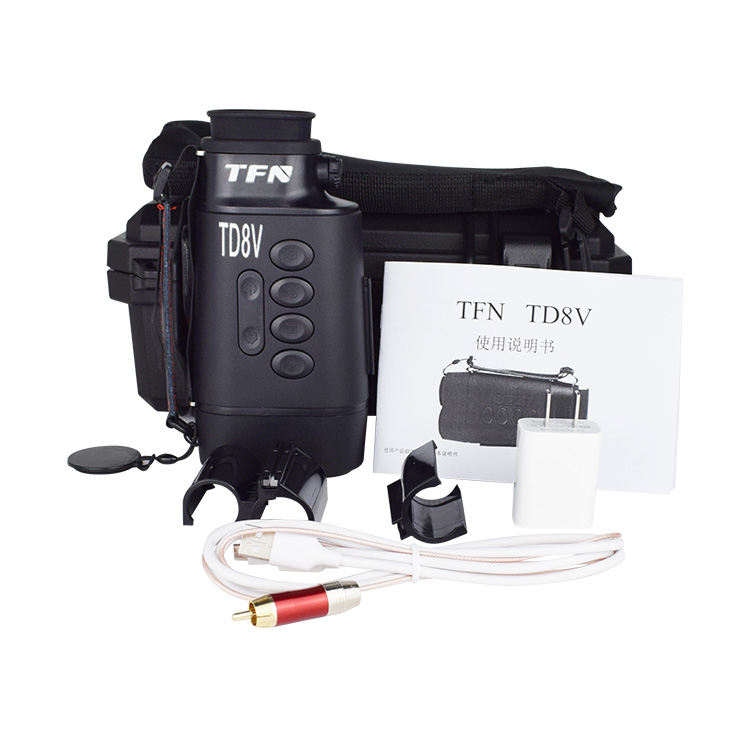 TFN TD8V (with video function) This is a dual-optical fusion thermal imaging night vision camera with video function. It adopts infrared, micro-light fusion, combining the respective advantages of infrared, micro-light, so that the imaging resolution is higher, the single body is easier to be recognized, and solved the single infrared can not pass through the defects of the glass, at the same time, it is a new addition to the fusion of the focus (picture-in-picture) function, which can be zoomed in on a single point and maintain a high degree of clarity.